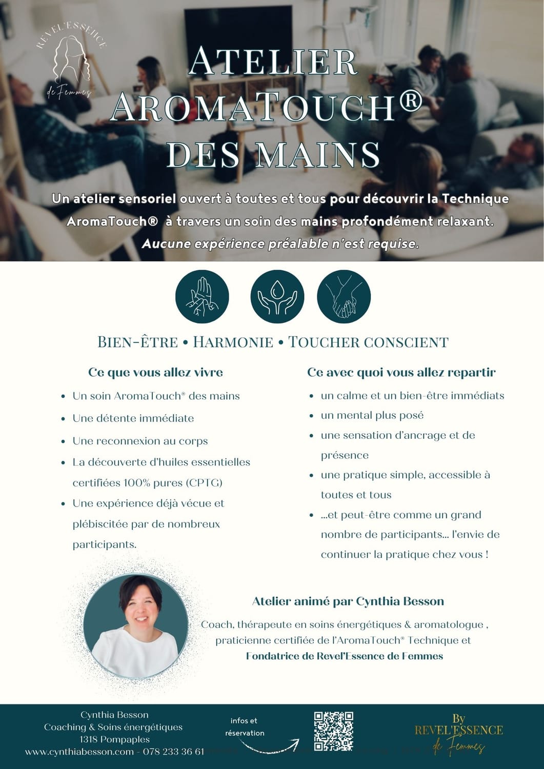 Cynthia Besson, Coaching & Soins énergétiques et Revel'Essence de Femmes ne peuvent être tenus responsables de la manière dont l'usager utilise ces informations.