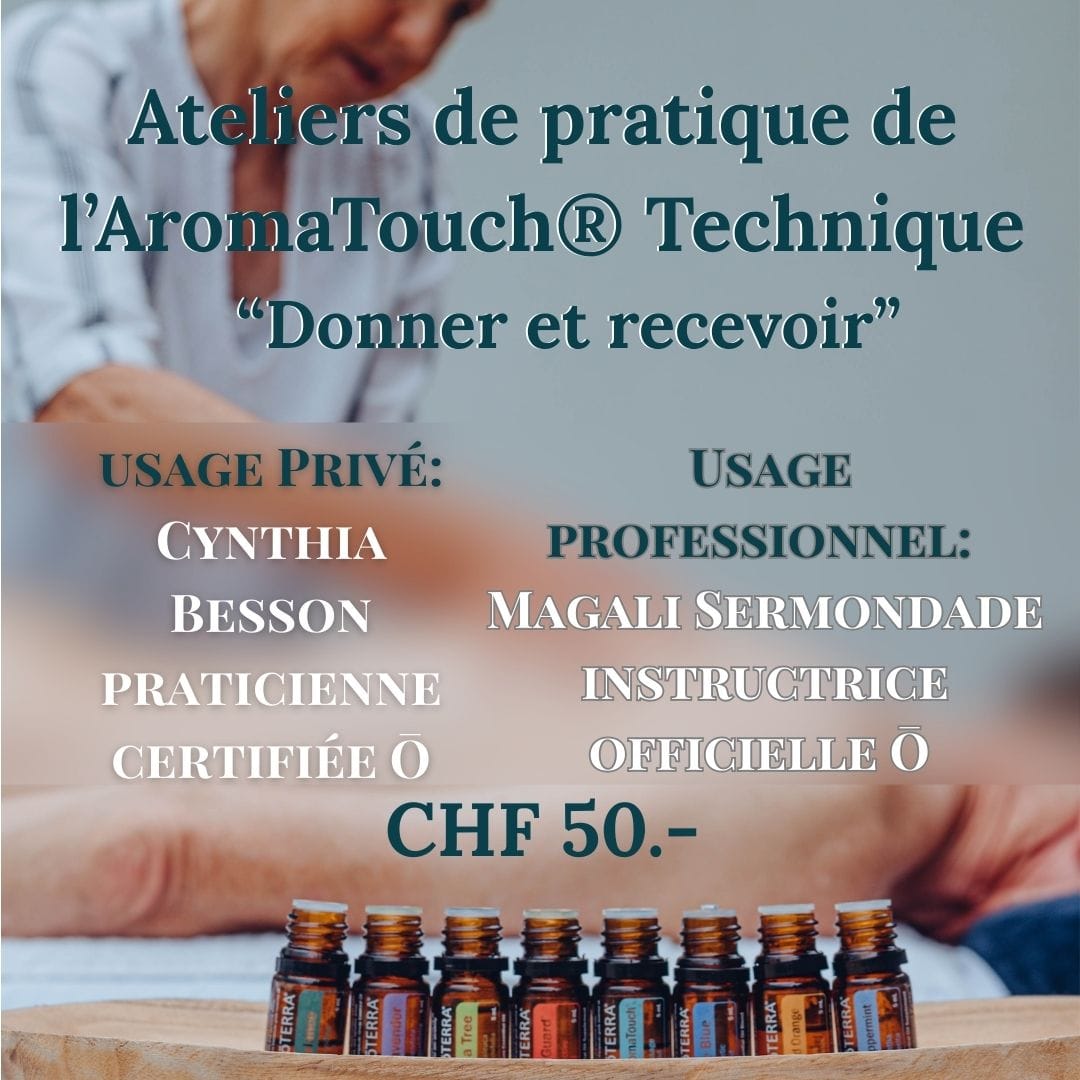 La Technique AromaTouch® est accessible à toutes et à tous, quels que soient l'âge et le genre. Elle vous permet d'apporter bien-être et sérénité à vos proches grâce à une méthode douce et adaptable. Que vous soyez un.e amateur.rice passionné.e d'huiles essentielles ou simplement en quête d'une nouvelle façon de vous détendre, la Technique AromaTouch® est une expérience à ne pas manquer.